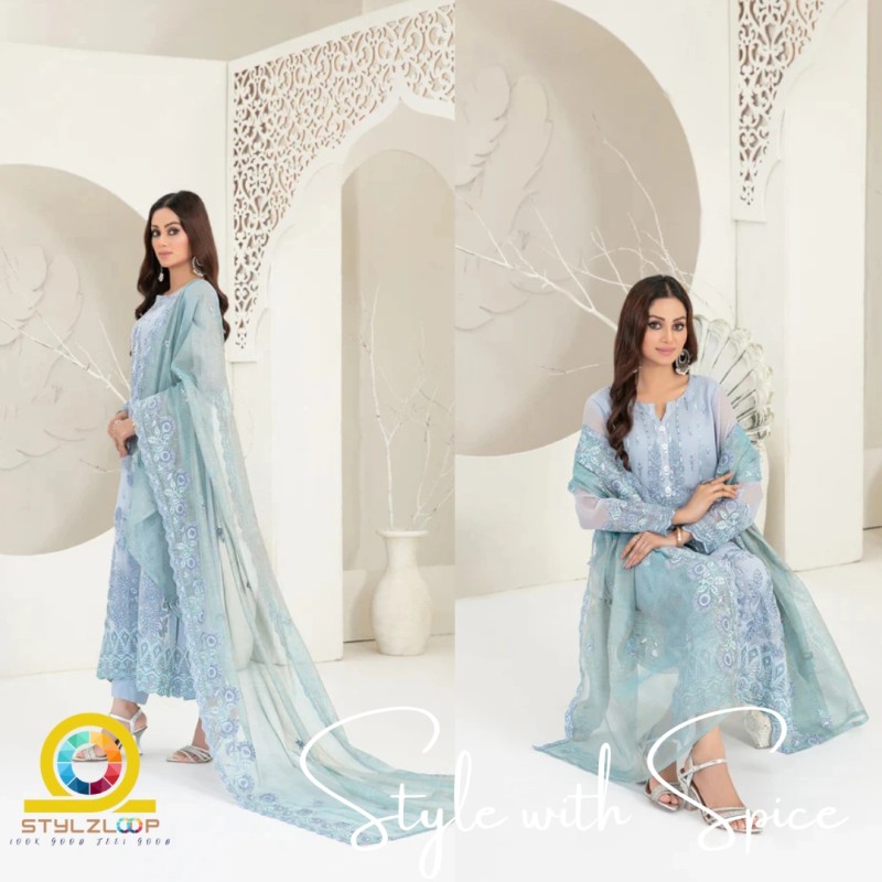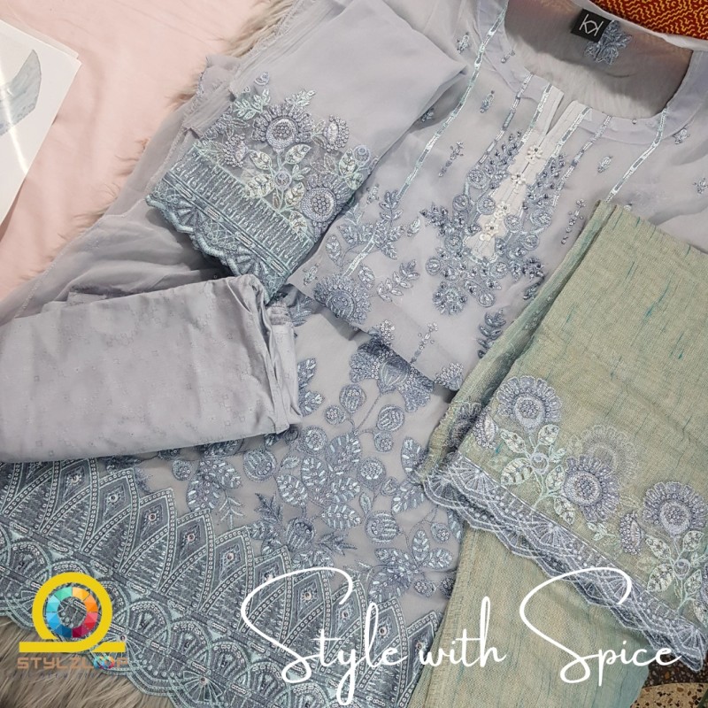 3 Piece Semi-Stitched Fancy Embroidered Chiffon Shirt | CALA-UN-05